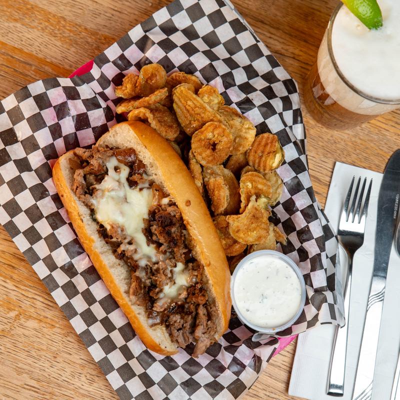 Our original Philly cheesesteak with fresh-cooked steak, caramelized onions, and melted provolone cheese.